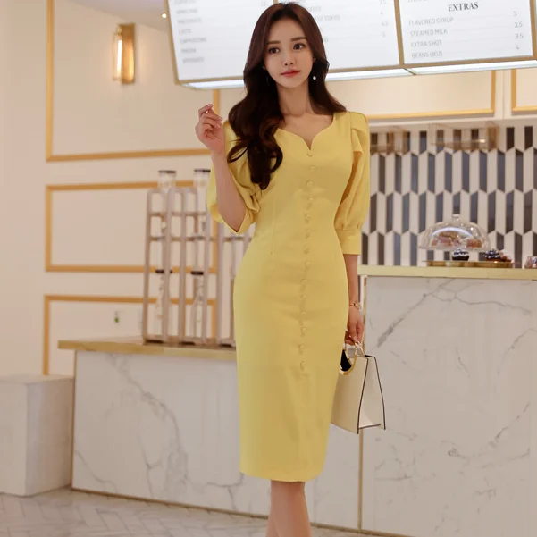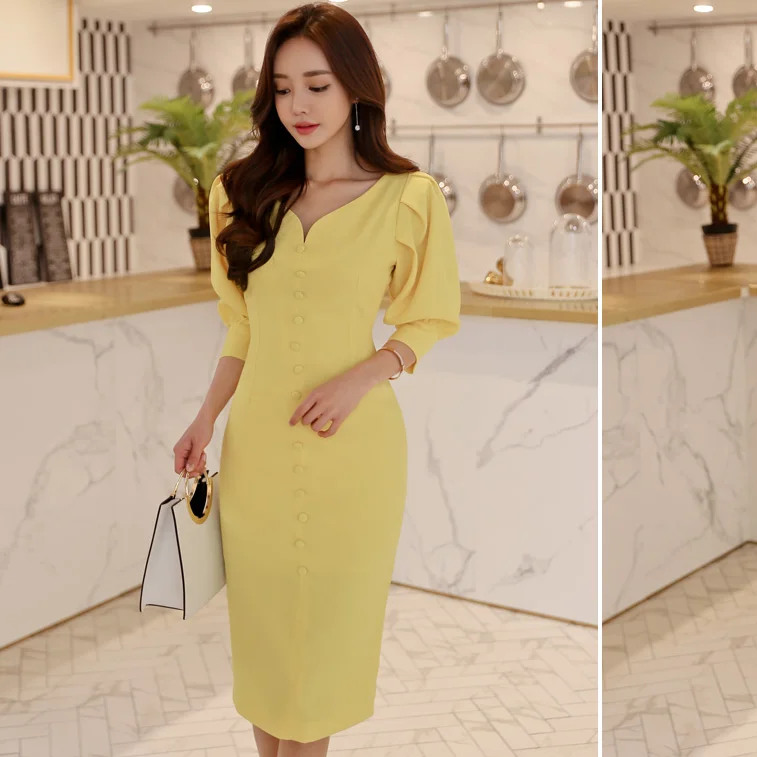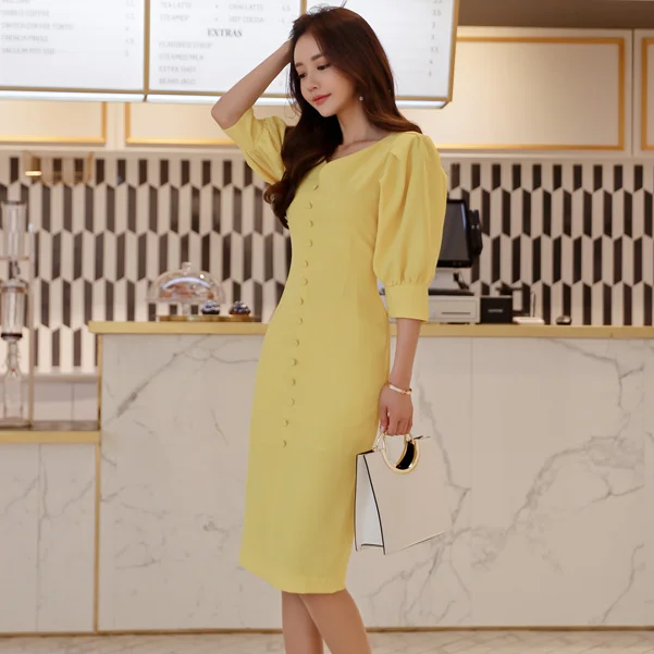 Dear my personal favorite Spring new han edition dress v neck temperament hubble bubble sleeve cultivate one #039;s morality show thin package hip split dress RECOMMENDED TODAY