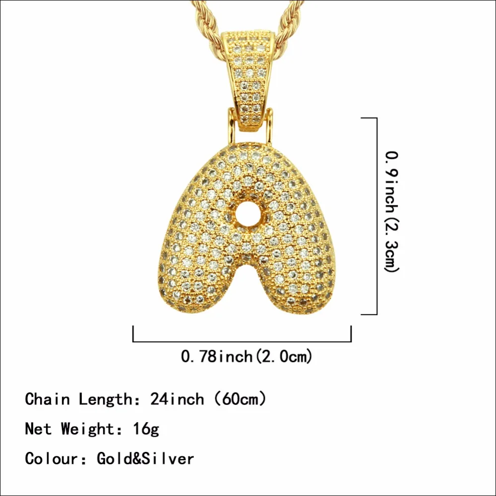 DISCOUNT my personal favorite 2019 Bubble A Z Letters Necklaces For Men Woman Boy Girl Chain Pendants For Men #039;s Zircon Hip Hop Men Jewelry RECOMMENDED TODAY