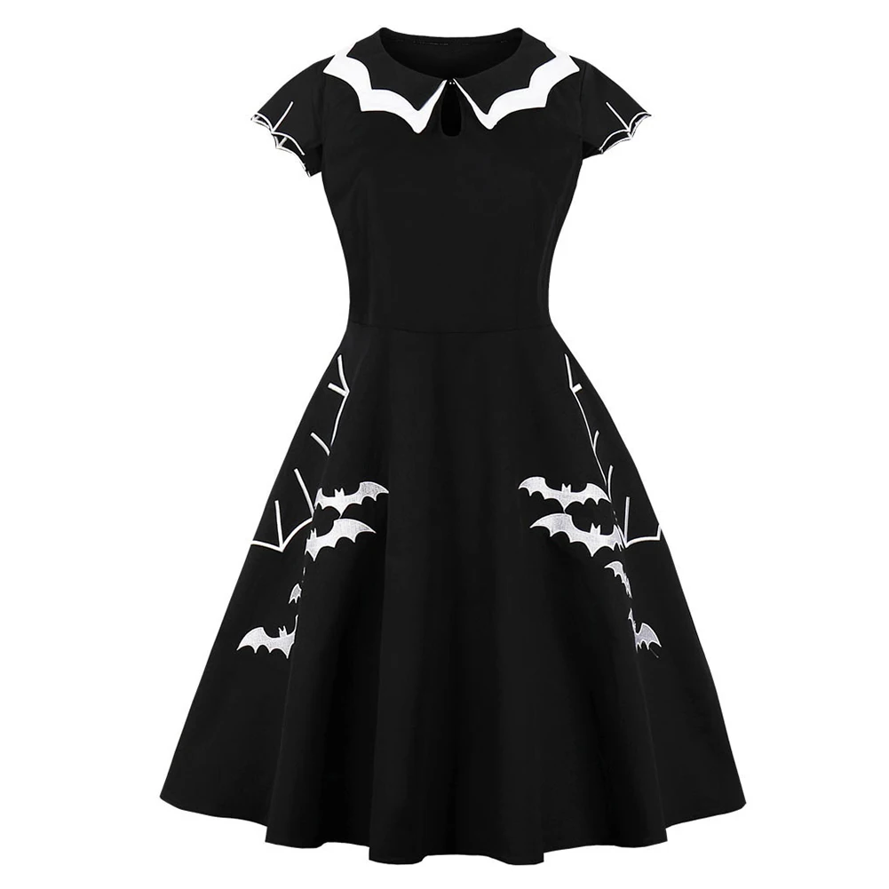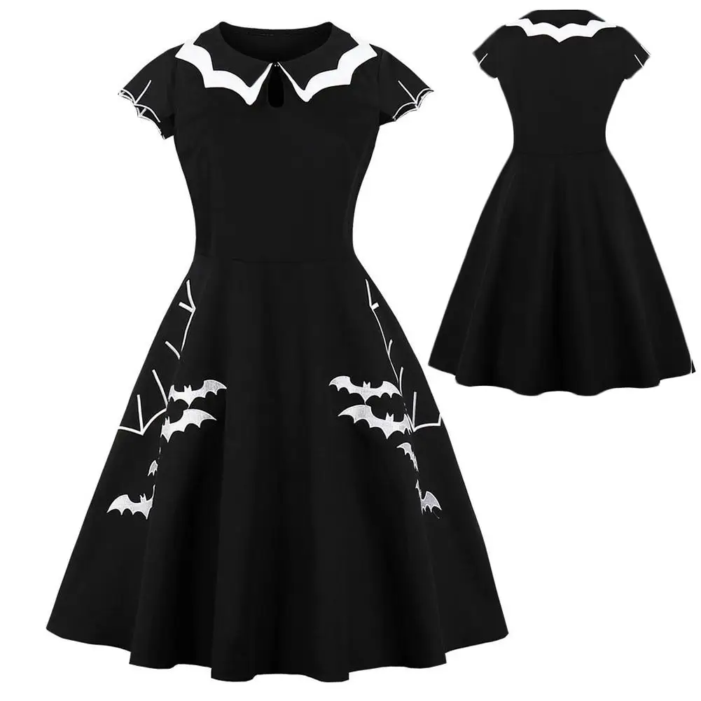 Dear definitely the Women Halloween Bat Embroidery Short Sleeve Hollow Ruffle Collar Midi Dress dress elegant party Women #039;s Floral Vintage RECOMMENDED TODAY